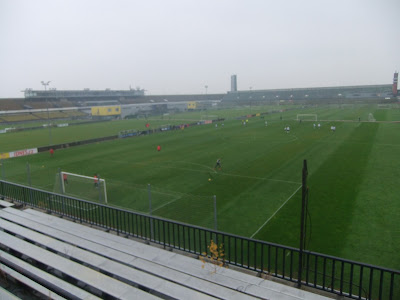 Last season they used their training complex, next door to the Evzena Rosickeho Stadium, when there was a clash on the same day. This is the TC Strahov, which is inside the huge old Strahov Stadium, which I've not been able to get inside on previous visits. It is situated at the top of Petrin Hill, & was, in it's heyday, the second biggest sporting arena in the world. It could comfortably hold over two hundred thousand spectators. Now it has, I'm not sure, seven or eight full size football pitches within. I was fortunate to catch a league match in the Czech Second Division clash between Sparta & Slavia Praha reserves, in a local derby, before dashing off to the Kladno First Team match at the main ground.