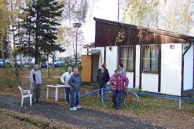 "From here it was a short wait for the 12.30 bus, to the Metro, then across the whole green line, to the other end, and a bus to Uhrineves, which was the original game I'd picked out after all, I was going to 'gamble' as there were a number of buses going down the road to there. This was also top division local Prague league A1A. They were eleventh, and were taking on second placed Dukla B. This was on the all-weather pitch, & though I'll certainly count it as a proper visit, I'm sure some proper 'hoppers would not, as there was a perfect grass pitch adjacent. I paid my 30 Kc at the 'gate' make that admission table, & was given a ticket. Sadly not a 'personalised' club one, and no programme. Not the end of the world, but still a shame! Again, if I was a proper' hopper I'd have turned round & walked away in disgust! ;-) The clubhouse/changing room was on the left, and past that was the grass pitch. Railed off, & marked out with goals up, so clearly still used. On the halfway line, on this, the bar side, was a small stand, not right on the touchline, but set back about ten yards. The all-weather pitch was to the right as I walked in, open, with no seats, hard standing all the way round, and railed off, but no terracing. A very one sided match as Dukla B ran out 6-0 winners. Dukla were in light blue shirts, instead of their famous marron, so I've seen one of their teams play in one of their 'famous' Half Man Half Biscuit Dukla Prague away shirts! A 'headcount' of the crowd gave a rough 40 attendance wise. I decided to miss the last few minutes to make sure I got the bus back to the Metro, to ensure I got my third match of the day! "
