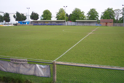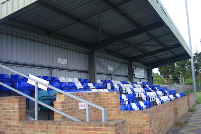 The ground is set back on the right, past the entrance. Here is the turnstile block. As I was taking this photo a club official, all blazered up, came out of the clubhouse & asked me what I was doing. Fully expecting to be told off & asked to leave, I explained I'd been to Bedfont Sports earlier, & that I was just a Dulwich Hamlet fan, who wanted to take a few photos of the ground. Imagine my surprise when he asked if I was Mishi! To which I replied I was. He said he looked in on here regularly & that I could take as much time inside as I wanted! Whoever you were..thank you for your kindness!